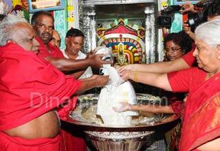மேல்மருவத்தூர் : மேல்மருவத்தூர் ஆதிபராசக்தி கோவிலில் ஆடிப்பூர விழா, நேற்று முன்தினம் கோலாகலமாக துவங்கியது. விழாவையொட்டி ஆதிபராசக்தி அன்னைக்கும், சுயம்புவிற்கும் அபிஷேகம் நடந்தது. அதை தொடர்ந்து அம்மனுக்கு சிறப்பு அலங்கார, ஆராதனைகள் செய்யப்பட்டன. நேற்று முன்தினம் மாலை, 4:00 மணிக்கு, ஆயிரக்கணக்கான பக்தர்கள் தீச்சட்டி ஏந்தியவாறு அம்மனை வழிபட்டனர். மாலை, 5:00 மணிக்கு கருவறை முன்பாகவும், புற்று மண்டபம் முன்பாகவும் அமைக்கப்பட்டிருந்த யாக சாலையில் கலச விளக்கு வேள்வி பூஜையை ஆதிபராசக்தி ஆன்மிக இயக்க தலைவர் லட்சுமி பங்காரு அடிகளார் துவக்கி வைத்தார். நேற்று காலை, பக்தர்கள் கொண்டு வந்த கஞ்சி, பிரசாதமாக வினியோகிக்கப்பட்டது. காலை 11:30 மணிக்கு ஆதிபராசக்தி ஆன்மிக இயக்க துணைத் தலைவர் செந்தில்குமார் முன்னிலையில், பங்காரு அடிகளார் பாலாபிஷேக நிகழ்ச்சியை துவக்கி வைத்தார். பாலாபிஷேக விழா ஆடிப்பூரமான இன்று மாலை வரை தொடர்ந்து நடைபெறுகிறது.