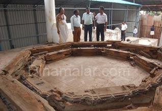 சிதம்பரம்: சிதம்பரத்தில் பழுதடைந்த நடராஜர் கோவில் தேர் செய்யும் பணியை பொதுப்பணித்துறை கண்காணிப்பு பொறியாளர் பார்வையிட்டு ஆய்வு செய்தார். சிதம்பரம் நடராஜர் கோவிலில் உள்ள நடராஜர் சுவாமி, சிவகாமசுந்தரி அம்மன் உள்ளிட்ட ஐந்து தேர்களை, சென்னை பச்சையப்பா அறக்கட்டளை பராமரித்து வருகிறது. இந்த தேர்கள் கடந்த சில ஆண்டுகளாக பழுதடைந்த நிலையில் இருந்ததால், ஆனித் திருமஞ்சனம், மார்கழி ஆருத்ரா தரிசனம் தேரோட்டத்தின் போது, பொதுப்பணித் துறை அதிகாரிகள் ஸ்திரத்தன்மை சான்று அளிக்க மறுத்தனர். கடந்த 3 தேரோட்டங்கள் உயரதிகாரிகளின் சிபாரிசின் பேரில் பொதுப்பணித் துறை அதிகாரிகள் சான்றளித்து தேரோட்டம் நடந்தது. அதனால், பழுதடைந்த நடராஜர் மற்றும் சிவகாமசுந்தரி தேர்களைப் புதுப்பிக்க வேண்டும் என கோவில் நிர்வாகம் மற்றும் பக்தர்கள் பச்சையப்பா அறக்கட்டளைக்கு கோரிக்கை வைத்ததைத் தொடர்ந்து, அறக்கட்டளைத் தலைவர் ஜெயச்சந்திரன், செயலர் ராஜகோபால் ஆகியோர் இரண்டு தேர்களையும் புதுப்பிக்க சம்மதம் தெரிவித்தனர். அதன் பேரில் கடந்த இரண்டு மாதங்களுக்கு முன் சிவகாமசுந்தரி அம்மன் தேர் 50 லட்சம் ரூபாய் மதிப்பில் புதுப்பிக்கப்பட்டது. அதனைத் தொடர்ந்து நடராஜர் சுவாமி தேரை 93 லட்சம் ரூபாய் மதிப்பில் புதுப்பிக்க நிதி ஒதுக்கீடு செய்யப்பட்டு கடந்த வாரம் பணிகள் துவங்கியது. பழுதடைந்த தேர் முற்றிலுமாக பிரிக்கப்பட்டு, புதிய பர்மா தேக்கு மரம் மூலம் தேர் செய்ய பணிகள் நடக்கிறது.