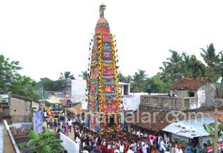 கண்டாச்சிபுரம்: கண்டாச்சிபுரம் அடுத்த கடையம் கிராமத்தில் உள்ள சூலப்பிடாரி அம்மன் கோவிலில் தேர் திருவிழா நடந்தது. கடையம், சி.என்.பாளையம்,சித்தரசூர் கிராமங்களுக்கு பொதுவான சூலப்பிடாரி அம்மன் விக்கிரகம் சித்தரசூர் கோவில் கிணற்றிலிருந்து எடுத்து கடையம் முத்து மாரியம்மன் ஆலயத்திற்கு கொண்டு வந்தனர். முத்து மாரியம்மன் ஆலயத்தில் அபிஷேக ஆராதனைகள் நடந்தன. சுமார் 60 அடி உயரமுள்ள தேரில் அம்மன் ஊர்வலம் நடந்தது. இத்தேரை கடையம் கிராமத்தைச் சேர்ந்த சுமார் 300 இளைஞர்கள் சுமந்து வந்தனர். நேற்று முன்தினம் நள்ளிரவு 12 மணிக்கு துவங்கிய தேர் திருவிழாவில், சுற்று வட்டார கிராமங்களைச் சேர்ந்த பக்தர்கள் கலந்து கொண்டு வழிபட்டனர். இதற்கான ஏற்பாடுகளை ஊராட்சி தலைவர் லட்சுமி கோதண்டராமன், தர்மகர்த்தா பாண்டுரங்கன் செய்தனர்.