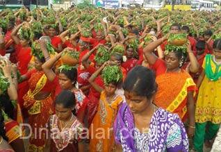 நெய்வேலி: நெய்வேலி ஆதிபராசக்தி வழிபாட்டு மன்றத்தின் சார்பில் 1008 பெண்கள் கஞ்சிக்கலயம் சுமந்து ஊர்வலமாக வந்து அம்மனுக்கு ÷ நர்த்திக் கடன் செலுத்தினர். உலக மக்களிடையே மனித நேயம் தழைக்கவும், மழை வளம் மற்றும் இயற்கை வளம் பெருகிட வேண்டியும், என்.எல்.சி., நிறுவனம் செழித்திட வேண்டி நெய்வேலி வட்டம் 12 ல் உள்ள மேல்மருவத்தூர் ஆதிபராசக்தி வழிபாட்டு மன்றத்தின் சார்பில் ஆடிப்பூர கஞ்சி வார்த்தல் நிகழ்ச்சி நடந்தது. இதையயொட்டி, நெய்வேலி வட்டம் 5 ல் உள்ள ஸ்ரீகதிர்காம வேலவன் கோவிலில் இருந்து புறப்பட்ட கஞ்சி க்கலய ஊர்வலத்திற்கு மாவட்ட தலைமை நிர்வாகிகள் கிருபானந்தன், சண்முகம், செல்வராஜ், சங்கரன், ”ப்ரமணியன் மற்றும் சங்கரலிங்கம் முன்னிலை வகித்தனர். என்.எல்.சி. ,முதன்மை பொது மேலாளர் கனகாச்சலம் துவக்கி வைத்தார். ஊர்வலத்தில் 1008 பெண்கள் கஞ்சி கலயம் சுமந்து நகரின் முக்கிய வீதிகள் வழியாக வந்து அம்மனுக்கு நேர்த்திக்கடன் செலுத்தினர். சிவன், அம்மன், வினாயகர் மற்றும் முருகன் வேடமணிந்த குழந் தைகள் மற்றும்முளைப்பாரி, தீச்சட்டி சுமந்து வந்த பெண் பக்தர்களும் ஊர்வலத்தில் கலந்து கொண்டனர். விழா ஏற்பாடுகளை வழிபாட்டு மன்ற தலைவர் சீத்தாலட்சுமி ராஜேந்திரன், செல்வகுமாரி சுவாமிநாதன், அனந்தராமன், வைதேகி வேல்முருகன், தனலட்சுமி மற்றும் ராஜராஜன் உள்ளிட் டோர் செய்திருந்தனர்.