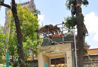 ஸ்ரீவில்லிபுத்தூர் : ஆண்டாள் கோயில் நந்தவனத்தில் பூ செடிகளும், மரங்களும் இருந்தன. 30 அடி உயரத்தில் வளர்ந்த நிலையில், அசோக மரங்களும் இருந்தன.அசோக மரங்களில் வவ்வால்கள் அதிகளவில் இருந்தன. இதனால் நந்தவன ஆண்டாள் சன்னதிக்கு வரும் பாதையில், வவ்வால்களின் எச்சங்கள் விழுந்து நாசம் செய்து வந்தன. சில நேரங்களில் எச்சங்கள் பக்தர்களின் மேல் விழுந்தும் வந்தன. இதனால் பக்தர்கள் பாதிக்கப்பட்டனர். இந்நிலையில் நந்தவனத்தில் நின்ற மூன்று அசோக மரங்களும், வெளியில் நின்ற நான்கு மரங்களும் வெட்டபட்டன.கோயில் செயல் அலுவலர் ராமராஜா,"" மரங்கள் வெட்டி அகற்றப்பட்ட பகுதியில் வேறு மரக்கன்றுகள் நடப்படவுள்ளன,என்றார்.