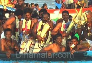 நாகப்பட்டினம்: நாகையில், அறுபத்து மூன்று நாயன்மார்களில் ஒருவராக போற்றப் படும் அதிபத்த நாயனாருக்கு சிவபெருமான், காட்சியளித்த நாளை நினைவு கூறும் வகையில், கடலில் தங்க மீன் விடும் நிகழ்ச்சி நடந்தது. நேற்று மதியம் நாகை நீலாயதாட்சி அம்மன் கோவிலில், இடப வாகனத்தில் சிவபெருமான் தேவியருடன் எழுந்தருளினார். புதிய கடற்கரையில் நம்பியார் நகர், ஆரியநாட்டு தெரு, சாமந்தான் பேட்டை கிராம மீனவர்கள் சீர்வரிசையுடன் வரவேற்றனர். புதிய கடற்கரைக்கு இடப வாகனத்தில் வந்த சிவபெருமான் மற்றும் அதிபத்த நாயனாருக்கு சிறப்பு தீபாராதனை நடந்தது. பின் அதிபத்த நாயனார் கட்டுமரத்தில் சென்று கடலில் தங்கமீனை விடும் நிகழ்ச்சி நடந்தது. நிகழ்ச்சியில், திரளான பக்தர்கள் கலந்து கொண்டு சுவாமி தரிசனம் செய்தனர்.