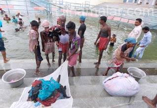 காரைக்கால்: திருநள்ளார் நளன்குளத்தில் பக்தர்கள் பயன்படுத்திய அடைகளை தூய்மைப்படுத்தும் பணியில் ஊழியர்கள் மேற்கொண்டுவருன்றனர். காரைக்கால் திருநள்ளாரில் பிரசித்தி பெற்ற தர்பாரண்யேஸ்வர கோவிலில் சனி பகவான் தனி சன்னதியில் அருள்பாலித்து வருகிறார். சனி பரிகார ஸ்தலமாக திருநள்ளார் விளங்கி வருவதால் நாள் தோறும் ஆயிரக்கணக்கிலும்,வார சனிக்கிழமைகளில் பல்வேறு மாநிலத்திலிருந்து சனிபகவானை தரிசிக்க பல்லாயிரக்கணக்கில் பக்தர்கள் வருகின்றனர். கோவிலுக்கு வரும் பக்தர்கள் அதிகாலையில் நளன்குளத்தில் குளித்துவிட்டு தங்கள் பரிகரத்திற்காக அனிந்திருக்கும் ஆடைகளை நளன் குளத்தில் விட்டு செல்கின்றார். இந்நிலையில் நேற்று முன்தினம் சனிக்கிழமை என்பதால் பல்லாயிரக்கணக்காண பக்தர்கள் நீராடினர். பக்தர்கள் பயன்படுத்திய அடைகளை திருநள்ளார் கோவில் நிர்வாகம் சார்பில் குளத்தில் உள்ள அடைகளை அகற்றும் பணிகளை <ஊழியர்கள் மேற்கொண்டுவருகின்றனர். மேலும் பக்தர்கள் வசதிக்காக குளத்தில் பல்வேறு பகுதியில் உள்ள மேட்டார் மூலம் தண்ணீரை தூய்மைப்படுத்தும் பணிகள் மேற்கொண்டுவருகிறது.