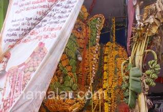 கொளத்துார் : விநாயகர் சதுர்த்தி விழா, நேற்றுடன் முடிவடைந்த நிலையில், மக்காச்சோள விநாயகர், சுற்றுச்சூழல் பாதிப்பின்றி பக்தர்களுக்கு பிரசாதமானார். சென்னை, கொளத்துார் லட்சுமி அம்மன் கோவில் அருகே, இந்து முன்னணி சார்பில், 7 ஆயிரம் மக்காச்சோளங்களால், 25 அடி உயர விநாயகர் சிலை, அமைக்கப்பட்டு இருந்தது.அன்னதானம், ஆன்மிக சொற்பொழிவு மற்றும் விளக்கு பூஜை உள்ளிட்ட விநாயகர் சதுர்த்தி விழாக்கள் நேற்றுடன் முடிவடைந்தது. மற்ற பகுதிகளில் உள்ள விநாயகர் சிலைகள் ஏரி, கடல் உள்ளிட்ட நீர் நிலைகளில் கரைக்கப்பட்டன.மக்காச்சோளங்களால் வித்தியாசமாக அமைக்கப்பட்ட விநாயகர் சிலைக்கு, நேற்று மதியம் 2:00 மணிக்கு, விடையாற்றி உற்சவம் நடந்தது. அதன்பின், சிலை பிரிக்கப்பட்டு பக்தர்களுக்கு ’பிரசாதமாக’ அளிக்கப்பட்டது. இதுகுறித்து, பக்தர்கள் கூறுகையில், ’விநாயகருக்கு, உகந்த உணவுப்பொருளான மக்காச்சோளம் மூலம், பிரமாண்ட சிலை அமைக்கப்பட்டது மகிழ்ச்சி அளிக்கிறது. அதை பிரித்து பிரசாதமாக வழங்கியதால், சுற்றுச்சூழலுக்கும் பாதிப்பில்லை’ என்றனர்.