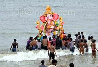 புதுச்சேரி: புதுச்சேரியில் மூன்றாம் கட்டமாக நேற்று, நகர பகுதிகளில் இருந்து விநாயகர் சிலைகள் ஊர்வலமாக கொண்டுவரப்பட்டு, கடலில் விஜர்சனம் செய்யப்பட்டது. விநாயகர் சதுர்த்தி விழா கடந்த மாதம் ௨௯ம் தேதி கோலாகலமாக கொண்டாடப்பட்டது. அதையொட்டி, புதுச்சேரி மற்ற்றும் சுற்றுவட்டார பகுதிகளில், பல்வேறு இடங்களில் விநாயகர் சிலைகள் பிரதிஷ்டை செய்யப்பட்டு, பூஜைகள் நடத்தப்பட்டது. மூன்று நாட்கள் பூஜைக்கு பிறகு, ௩௧ம் தேதியும், அடுத்து கடந்த ௨ம் தேதியும், இந்து முன்னணி மற்றும் விநாயகர் சதுர்த்தி பேரவை விழா கமிட்டி சார்பில், விநாயகர் சிலைகள் ஊர்வலமாக கொண்டு வரப்பட்டு, கடற்கரை சாலை டியூப்ளே சிலை அருகே, ராட்சத கிரேன் மூலம் கடலில் கரைக்கப்பட்டது.மூன்றாம் கட்டமாக நேற்று, புதுச்சேரி நகரில் பாரதிபுரம், கோவிந்தசாலை உள்ளிட்ட பகுதிகளில் வைக்கப்பட்டிருந்த ௨௦க்கும் மேற்பட்ட சிலைகள், ஊர்வலமாக கொண்டு வரப்பட்டு, கடற்கரை சாலை சீகல்ஸ் ஓட்டல் பின்புறம் உள்ள கடல் பகுதியில் விஜர்சனம் செய்யப்பட்டன. விநாயகர் சிலை ஊர்வலத்தில் ஏராளமான போலீசார் பாதுகாப்பு பணியில் ஈடுபட்டனர்.
