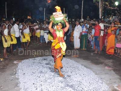 காஞ்சிபுரம் : காஞ்சிபுரம், இந்திரா நகரில் உள்ள ஆகாய கன்னியம்மன் கோவிலில், நேற்று முன்தினம், தீமிதி திருவிழா நடந்தது. காஞ்சிபுரம், ஆலடி தோப்பு தெரு, இந்திரா நகரில், ஆகாய கன்னியம்மன் கோவில் உள்ளது. இக்கோவிலில், ஆடி திருவிழாவும், 10ம் ஆண்டு தீமிதி திருவிழாவும், கடந்த வியாழக்கிழமை துவங்கியது. அன்று காலை, காப்பு கட்டுதல், பால்குடம் எடுத்தல் நிகழ்ச்சி நடந்தன.வெள்ளிக்கிழமை மாலை, விளக்கு பூஜை நடந்தது. மூன்றாம் நாளான திங்கள்கிழமை காலையில், அம்மனுக்கு சிறப்பு அபிஷேகம்; மதியம் 1:00 மணிக்கு கூழ்வார்த்தல்; மாலை 4:00 மணிக்கு ஊரணி பொங்கல் ஆகியவை நடைபெற்றன. அதை தொடர்ந்து, இரவு 7:00 மணியளவில் தீமிதி திருவிழா நடைபெற்றது. இதில், நுாற்றுக்கும் மேற்பட்ட பக்தர்கள், அக்னி குண்டத்தில் இறங்கி, தங்கள் நேர்த்திக்கடனை செலுத்தினர். இரவு 9:00 மணிக்கு, ஆகாய கன்னி அம்மன் அலங்கரிக்கப்பட்டு, திருவீதியுலா நடைபெற்றது.