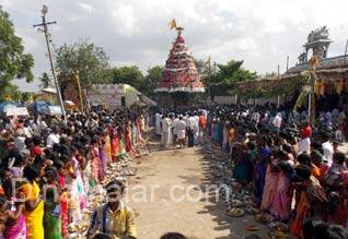 கள்ளக்குறிச்சி: வாணியந்தல் மாரியம்மன் கோவில் தேர் திருவிழாவில் பல்வேறு கிராம பொதுமக்கள் பங்கேற்று தேர் வடம் பிடித்து இழுத்தனர். கள்ளக்குறிச்சி அடுத்த வாணியந்தல் மாரியம்மன் கோவில் தேர் திருவிழா கடந்த மாதம் 25ம் தேதி துவங்கியது.தினம் சக்தி பிறப்பு, ரேணுகா சரித்திரம், பெரியநாயகி, ஆதிலட்சுமி, மாரியம்மன், ஆதி, அம்மன், காத்தவராயன் ஆரியமாலா பிறப்பு மற்றும் சனீஸ்வரனுக்கு முத்து போடுதல் நடந்தது. அம்மனுக்கு ஊரணி பொங்கல், கூழ் ஊற்றுதல், காத்தவராயன் சுவாமி ஆரியமாலாவிற்கு வளையல் போடுதல், திருக்கல்யாணம் சின்னான் சுவாமி மோடி எடுத்தல், காத்தவராயன் கழுகு மரம் ஏறுதல் மற்றும் அம்மன் வீதியுலா நடந்தது. நேற்று காலை அலகுபோடுதல், அக்னிசட்டி ஊர்வலம், காளி கோட்டை இடித்தல் நடந்தது. பகல் 2.30 மணிக்கு மாரியம்மனுக்கு சிறப்பு அலங்காரம் செய்து தேரில் எழுந்தருள செய்தனர். பெண்கள் மாவிளக்கு வைத்து வழிபாடு செய்த பின் தேர் வடம் பிடித்து இழுத்தனர்.
