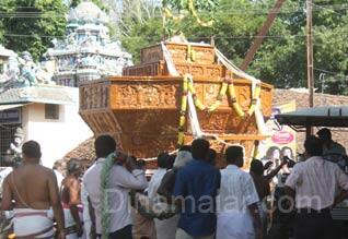 இதையொட்டி சிறப்பு ஹோமங்கள் செய்யப்பட்டு புனிதநீர் மற்றும் சந்தனம் திருத்தேரில் தெளிக்கப்பட்டு மேலக்கோட்டைவாசல், பெருமாள் கோயில் மேலவீதி, வடக்கு வீதி வழியாக திருத்தேரை திரளாக பக்தர்கள் வடம்பிடித்து நிலையடிக்கு கொண்டு வந்தனர். ஏற்பாடுகளை கோயில் செயல் அலுவலர் சிவக்குமார் மற்றும் நவநீத கிருஷ்ண சுவாமி கைங்கர்ய சபாவினர் செய்திருந்தனர்.