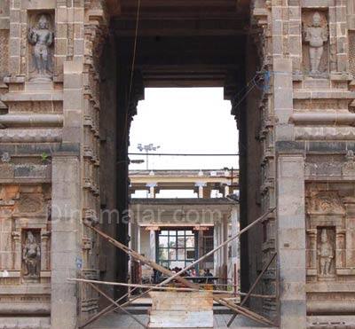 சிதம்பரம்: சிதம்பரம் நடராஜர் கோவில் திருப்பணிகள் துவங்கப்பட்டுள்ளதால் கிழக்கு கோபுர வாயில் அடைக்கப்பட்டு பக்தர்கள் மாற்று கோபுரம் வழியாக செல்ல அனுமதிக்கப்பட்டுள்ளனர். பூலோக கைலாசம், சிதாகாசம், இதயக்கோவில் என பல்வேறு சிறப்புகள் பெற்ற பிரசித்திப்பெற்ற சி தம்பரம் நடராஜர் கோவில் கடந்த 1987ம் ஆண்டு அனைத்து சன்னதிகள், நான்கு கோபுரம் ஆகியவை ஒரே சமயத்தில் கும்பாபிஷேகம் நடந்தது. அதன் பின்னர் கிழக்கு மற்றும் மேற்கு கோபுரம் 2006ம் ஆண்டும், வடக்கு கோபுரம் 2007ம் ஆண்டும், தெற்கு கோபுரம் 2008ம் ஆண்டும் நடந்தது.