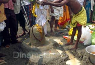 மதுராந்தகம்: மதுராந்தகத்தை சுற்றியுள்ள பகுதிகளில் போதிய நீரின்றி, பயிர்கள் கருகி வருவதால், விவசாயிகள் மழை வேண்டி, வருண பகவானுக்கு சிறப்பு பூஜை நடத்தினர். கடந்த இரண்டு ஆண்டுகளாக, பருவ மழை பொய்த்து போனதால், மாவட்டத்தில் உள்ள ஏரி, குளங்கள் நீரின்றி வறண்டுள்ளன. இதனால், விவசாயிகள் பயிரிட்ட பயிர்கள், போதிய நீர் வரத்தின்றி கருகி வருகின்றன. பல விவசாயிகள் பயிரிட முடியாமல் பெரிதும் பாதிக்கப்பட்டு வருகின்றனர். இந்நிலையில், மதுராந்தகம் மற்றும் சுற்றியுள்ள கிராமங்களைச் சேர்ந்த நுாற்றுக்கும் மேற்பட்ட விவசாயி கள், நேற்று பிற்பகல் 1 மணியளவில், மழை வேண்டி, மதுராந்தகம் ஏரியில் சிவ லிங்கம் பிரதிஷ்டை செய்தனர். தொடர்ந்து லிங்கத்திற்கு சிறப்பு பூ ஜைகளும் வருண பகவானுக்கு சிறப்பு பூஜைகளும் செய்தனர்.