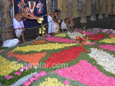 ஸ்ரீவில்லிபுத்தூர்: ஸ்ரீவில்லிபுத்தூர் வடபத்ரசாயி கோயிலில் புரட்டாசி பிரம்மோற்சவ விழாவையொட்டி புஷ்ப யாகம் நடந்தது. விழாவில் ஸ்ரீதேவி, பூதேவியுடன் சிறப்பு அலங்காரத்தில் சுவாமி அருள்பாலித்தார். ஏராளமான பக்தர்கள் தரிசனம் செய்தனர்.