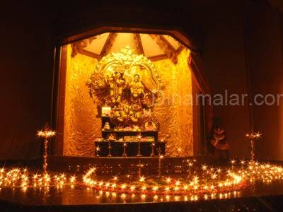 மதுரை: மதுரை மணிநகரத்திலுள்ள இஸ்கான் ஹரே கிருஷ்ணா கோயிலில் ஒவ்வொரு வருடமும் தாமோதர தீபத்திருவிழா சிறப்பாக நடைபெறுகிறது. இவ்விழாவின் சிறப்பம்சம் என்னவெனில், பக்தர்களே நேரடியாக சுவாமிக்கு தீப ஆரத்தி காட்டலாம் என்பதே ஆகும். தினமும் மாலை 6.30 மணியளவில் நடைபெறும் இவ்விழா நவம்பர் 6ம் தேதி வரை ஒரு மாத காலம் நடைபெறும்.