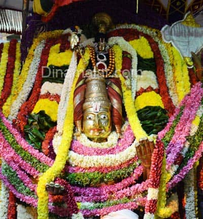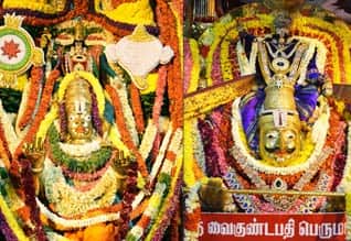 இதில் ஒவ்வொரு சனிக்கிழமையும் பெருமாள் பல்வேறு அலங்காரங்களில் பக்தர்களுக்கு காட்சியளித்தார். கடைசி சனிக்கிழமையான நேற்று முன் தினம் காலை சுப்ரபாத பாராயணம், கோ பூஜை, திருப்பதி வெங்கடாஜலபதி பெருமாள் விஸ்வரூப தரிசனம் நடந்தது. இரவு 8:00 மணிக்கு சுவாமி சர்வ அலங்காரத்துடன் வைகுண்டபதி பெருமாள், ரங்கநாதபெருமாள், ஜெகநாதபெருமாள், வரதராஜபெருமாள், சீனிவாசப்பெருமாள், ஐந்து கருடசேவையில் எழுந்தருளினர். ஆயிரக்கணக்கான பக்தர்கள் சுவாமி தரிசனம் செய்தனர். பின், நான்கு வீதிகளில் ஐந்து கருட சேவை உலாவும் நடந்தது.