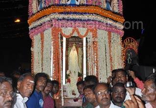புதுச்சேரி: தட்டாஞ்சாவடி புனித பாத்திமா அன்னை ஆலய 60ம் ஆண்டு பெருவிழா தேர் பவனி நேற்று நடந்தது. தட்டாஞ்சாவடி புனித பாத்திமா அன்னை ஆலய 60ம் ஆண்டு பெருவிழா கடந்த 5ம் தேதி கொடியேற்றத்துடன் துவங்கியது. தொடர்ந்து ஒவ்வொரு நாளும் காலை 6.௦௦ மணிக்கு சிறப்பு திருப்பலியும், மாலை 5:00 மணிக்கு திருப்பலியும் சிறிய தேர் பவனியும் நடந்தது.ஆண்டு பெருவிழாவில் நேற்று காலை 7:30 மணிக்கு கட லுார்–புதுச்சேரி உயர்மறை மாவட்ட பேராயர் ஆனந்தராயர் தலைமையில் சிறப்பு திருப்பலி, மாலை 5:30 மணிக்கு பெரிய தேர்பவனி, நற்கருணை ஆசீர் ஆகியவை நடந்தது. விழாவில் முதல்வர் ரங்கசாமி பங்கேற்று தேர் பவனியை துவக்கிவைத்தார். இன்று(14ம் தேதி) காலை 6:30 மணிக்கு திரு ப்பலி மற்றும் கொடியிறக்கம் நடக்கிறது. விழா ஏற்பாடுகளை ஆலய பங்குதந்தை, பங்குமக்கள் மற்றும் விழாக் குழுவினர் செய்துள்ளனர்.