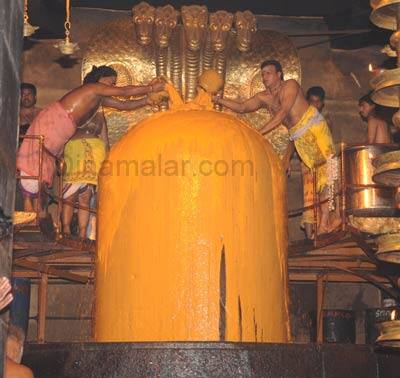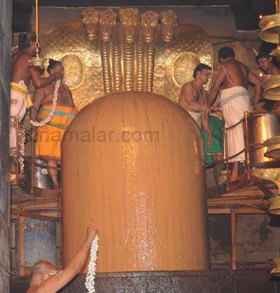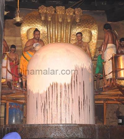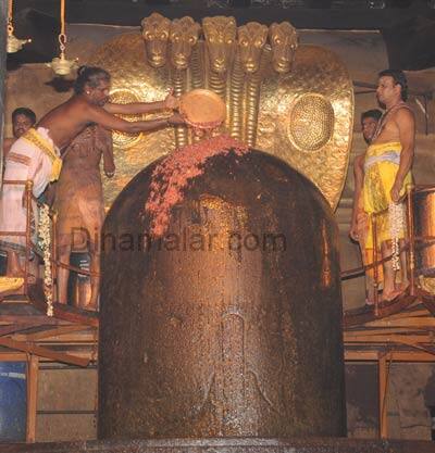 உலக வளம் வேண்டி, விபூதி அபிஷேகம், சுகம் தரும் தைலக்காப்பு அபிஷேகம், பக்தி வளரும் சாம்பிராணி அபிஷேகம், பாவத்தை போக்கும் நவகவ்ய அபிஷேகம், நன்மை தரும் திரவியப்பொடி அபிஷேகம், இன்பம் தரும் வாசனைப்பொடி அபிஷேகம், ராஜவசியம் தரும் மஞ்சள் அபி÷ ஷகம், தீர்க்க ஆயுள் கிட்ட, பஞ்சாமிர்த அபிஷேகம், சாந்த குணம் அளிக்கும் பசும்பால் அபிஷேகம், நன்மக்கள் பேறு தரும் பசுந்தயிர் அபிஷேகம், கோபத்தை போக்கும் மாதுளை அபிஷேகம், ராஜயோகம் கிடைக்கும் இளநீர் அபிஷேகம், லாபம் தரும் சோர்ணாபிஷேகம், புண்ணியம் கிடைக்க, ஸ்தல அபிஷேகம் என, 48 வகை அபிஷேகங்கள் நடந்தன. பெருந்தீப வழிபாடும் நடந்தது. இதில், ஏராளமான பக்தர்கள் கலந்து கொண்டு, சுவாமியை வழிபட்டனர். மாலையில், மதுரையைச் சேர்ந்த கல்வெட்டு மற்றும் தொல்லியல் அறிஞர் சாந்தலிங்கம், தஞ்சை மகா நந்தி ஆன்மிக சபை தலைவர் பாலசந்தர் ஆகியோருக்கு, மாமன்னன் ராஜராஜன் விருது வழங்கப்பட்டது.