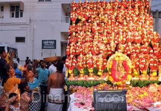 சேலம்: சேலம், அம்மாபேட்டை செங்குந்தர் சுப்பிரமணிய ஸ்வாமி கோவிலில், பன்னிரு திருமுறை மன்றத்தின் சார்பில் நடந்த, அறுபத்து மூவர் திருவீதி உலாவை, திரளாக பக்தர்கள் தரிசித்தனர்.சேலம், அம்மாபேட்டை, செங்குந்தர் சுப்பிரமணிய ஸ்வாமி கோவிலில், பன்னிரு திருமுறை மன்றத்தின் சார்பில், அறுபத்து மூவர் திருவிழாவை முன்னிட்டு, நேற்று காலை, ஐங்கரப் பெருமானுக்கு திருமஞ்சனம், சொக்கநாதர், மீனாட்சி அம்மனுக்கு திருமஞ்சனம், அனைத்து திருமேனிகளுக்கும் (அபிடேகம்) திருமஞ்சனம் செய்விக்கப்பட்டு, புத்தாடை அணிவிக்கப்பட்டது.