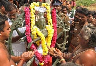 அரியலூர்: ஆஸ்திரேலியாவிலிருந்து மீட்கப்பட்ட நடராஜர் சிலை, ஸ்ரீபுரந்தான் சிவன் கோவிலுக்கு, நேற்று கொண்டு வரப்பட்டது. கிராம மக்கள், சிலைக்கு சிறப்பு பூஜை செய்து வழிபட்டனர்.அரியலூர் மாவட்டம், உடையார்பாளையம் தாலுகா, ஸ்ரீபுரந்தான் கிராமத்தில் குலோத்துங்க சோழன் காலத்தில் கட்டப்பட்ட பிரகதீஸ்வரர் சிவன் கோவில் உள்ளது. இங்கிருந்த ஸ்வாமி, அம்பாள், விநாயகர், நடராஜர் உள்ளிட்ட, எட்டு ஐம்பொன் சிலைகள், கடந்த, 2008 மார்ச், 24ம் தேதி, கொள்ளையடிக்கப்பட்டது. சர்வதேச சிலை கடத்தல்காரர் சுபாஷ் சந்திரகபூர் கைது செய்யப்பட்டதை தொடர்ந்து, ஆஸ்திரேலியாவில் உள்ள மியூஸியத்தில் வைக்கப்பட்டிருந்த நடராஜர் சிலை, கடந்த இரண்டு மாதங்களுக்கு முன், புதுடில்லியில், இந்திய பிரதமரிடம் ஒப்படைக்கப்பட்டது.தொடர்ந்து, ஜெயங்கொண்டம் நீதிமன்ற உத்தரவுபடி, பாதுகாப்பு கருதி கும்பகோணத்தில் உள்ள சிலை பாதுகாப்பு மையத்தில், நடராஜர் சிலை வைக்கப்பட்டது. இந்நிலையில், ஸ்ரீபுரந்தான் பிரகதீஸ்வரர் கோவில் திருப்பணி மேற்கொள்ளப்பட்டு, அதற்கான கும்பாபிஷேகம் வரும், 9ம் தேதி நடைபெறவுள்ளது. இதையடுத்து, கும்பகோணம் சிலை பாதுகாப்பு மையத்தில் வைக்கப்பட்டிருந்த நடராஜர் சிலை, நேற்று பலத்த பாதுகாப்புடன் ஸ்ரீபுரந்தான் சிவன் கோவிலுக்கு கொண்டு வரப்பட்டது.ஸ்ரீபுரந்தான் கிராம எல்லையில் திரண்ட பொதுமக்கள், நடராஜர் சிலைக்கு உற்சாக வரவேற்பு கொடுத்து, மேள தாளத்துடன் கோவிலுக்கு கொண்டு சென்றனர். எட்டு ஆண்டுகளுக்கு பின், அங்குள்ள சிவன் கோவிலில் வைத்து, நடராஜருக்கு சிறப்பு ஆராதனை செய்யப்பட்டது.