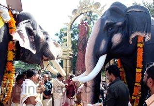 குருவாயூர்: குருவாயூர் கோவிலுக்கு சொந்தமான கேசவன் யானையின் நினைவு தினம், நேற்று அனுசரிக்கப்பட்டது. கோவில் வளாகத்தில் நிறுவப் பட்டுள்ள யானை சிலைக்கு, பத்மநாபன் யானை, மரியாதை செலுத்தியது.