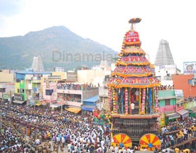 திருவண்ணாமலை அருணாச்சலேஸ்வரர் கோவிலில் கார்த்திகை தீப விழாவில் முக்கிய விழாவான, மஹா ரத தேரோட்டத்தில், 60 டன் எடை கொண்ட, 63 அடி உயரமுள்ள மஹா ரதத்தில், அண்ணாமலையார் சமேத உண்ணாமுலையம்மன் அலங்கரிக்கப்பட்டு, சிறப்பு பூஜைக்கு பின் மாட வீதி உலா வந்து பக்தர்களுக்கு அருள் பாலித்தனர். இந்த மகா தேரோட்டத்தில் ஏராளமான பக்தர்கள் வடம் பிடித்து “அண்ணாமலையாருக்கு அரோகரா’ என கோஷத்துடன் தேர் இழுத்தனர்.