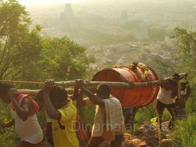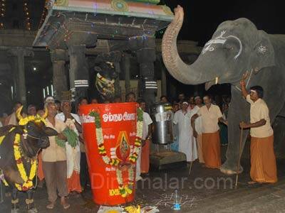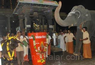 திருவண்ணாமலை: திருவண்ணாமலை அருணாச்சலேஸ்வரர் கோவிலில் கார்த்திகை தீப விழா 5ம் தேதி நடைபெறுகிறது. 2668 அடி உயரம் உள்ள அண்ணாமலையார் மலை உச்சியில் ஏற்றப்படும் மகா தீபத்திற்கு ராட்சகொப்பரையை மலை உச்சிக்கு கொண்டு செல்வதற்கு முன் கோவில் நடந்த சிறப்பு பூஜையில், கோவில் பசு மற்றும் யானை வணங்கியது. பின்னர் ராட்சகொப்பரையை கோயில் ஊழியர்கள் மலை உச்சிக்கு கொண்டு சென்றனர்.