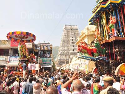 பிரம்மாவுக்கு நன்றி:திருவண்ணாமலை அருணாச்சலேஸ்வரர் கோவிலில் கார்த்திகை தீப விழாவில் நேற்று தேரோட்டம் நடந்தது. இதனை நல்லபடியாக நடத்திய பிரம்மாவிடம் பெரிய தேர் முன் குதிரை வாகனத்தில் உண்ணாமுலையம்மன் சமேதரராய் அண்ணாமலையார், எழுந்தருளி நன்றி தெரிவித்தார். ஏராளமான பக்தர்கள் தரிசனம் செய்தனர்.