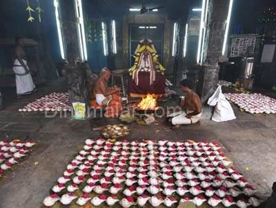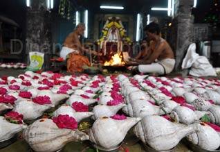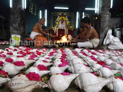 இந்து சமய அறநிலையத்துறைக்குட்பட்ட தங்கசாலையில் உள்ள ஏகாம்பரேஸ்வரர் கோவிலில், கார்த்திகை மாத பூஜைகள் சிறப்பாக நடந்து வருகின்றன. சிவனுக்கு மிகவும் உகந்ததாக கூறப்படும், நான்காவது வாரமான நேற்றைய கார்த்திகை சோம வாரத்தை முன்னிட்டு, சுவாமிக்கு, 1,008 சங்காபிஷேகம் நடைபெற்றது.காலை 11:00 மணிக்கு துவங்கிய சங்காபிஷேகம், மதியம் 2:30 மணிக்கு நிறைவு பெற்றது. பின், மாலை 3:30 மணிக்கு பூர்ணாஹூதியும், அதையடுத்து, பக்தர்களுக்கு பிரசாதமும் வழங்கப்பட்டது. அதில், ஏராளமான பக்தர்கள் பங்கேற்று சுவாமி தரிசனம் செய்தனர். வரும், 12ம் தேதி காளிகாம்பாள் கோவிலில், குத்து விளக்கு பூஜை நடைபெறவுள்ளது.