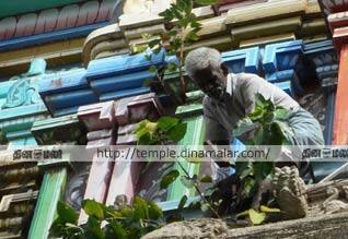 அவர் கூறியதாவது: ஐந்தாம் வகுப்பு வரை படித்துள்ளேன். இதுவரை காஞ்சிபுரம் ஏகாம்பரநாதர், திருக்கழுக்குன்றம் சக்திபுரீஸ்வரர், தென்காசி காசிவிஸ்வநாதர், விருத்தாசலம் விருத்தகிரீஸ்வரர், திருநெல்வேலி நெல்லையப்பர், திருவிடை மருதூர் நாறும் பூநாதர் உள்ளிட்ட சிவாலயங்களின் கோபுர உச்சியில் வளர்ந்திருந்த செடிகளை அகற்றி உள்ளேன். பறவைகள் உண்ட பழங்களின் மிச்சம் மற்றும் எச்சங்களால், சரியான சீதோஷ்ண நிலை உருவாகும்போது கோபுரங்களில் செடிகள் வளர்ந்து விடும். தகுந்த பாதுகாப்பு உபகரணங்களுடன் கோபுரக்கலசம் வரை சென்று, இதற்கென விசேஷமாக தயாரிக்கப்பட்ட ’ஆசிட்’டை செடியின் மீது ஊசி மூலம் செலுத்தி விடுவேன்.