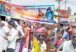 திருத்தணி, சலவைத் தொழிலாளர்களின் குலதெய்வமான, வீரபத்ர சுவாமி கோவிலில், வண்ணார்குல மைலார் திருவிழா, நேற்று நடந்தது. சங்க தலைவர் குப்பன்ராஜ் தலைமையில், நேற்று காலை 10:30 மணிக்கு, 100க்கும் மேற்பட்ட பெண்கள், பொங்கல் கூடைகளை தலையில் சுமந்துவாறு, திருத்தணி பெரிய தெரு மண்டபத்தில் இருந்து, முக்கிய வீதிகள் வழியாக, ஊர்வலமாக, அனுமந்தாபுரம் வண்ணார்குட்டைக்கு வந்தனர்.அங்கு, பெண்கள் பொங்கல் வைத்து, மூலவர் வீரபத்ர சுவாமிக்கு படைத்து, தேங்காய் உடைத்து பூஜை செய்து வழிபட்டனர். தொடர்ந்து, சலவை தொழிலாளர்கள் தங்கள் குடும்பத்துடன் பொங்கல் உணவை சாப்பிட்டு, மாலை 5:00 மணிக்கு, தங்களது வீடுகளுக்கு திரும்பினர்.