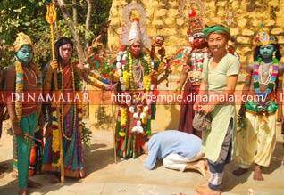 திருவண்ணாமலை: திருவண்ணாமலையில், நடந்த மயான கொள்ளை திருவிழாவில் வெளிநாட்டினர் நடனமாடி கொண்டாடினர்.திருவண்ணாமலையில், மஹாசிவராத்திரியை முன்னிட்டு, மயான கொள்ளை விழா சிறப்பாக நடந்தது. இதை முன்னிட்டு மணலூர் பேட்டை சாலை, அசலியம்மன் கோவில் தெரு அங்காளம்மன் கோவில்களில் சிறப்பு பூஜை மற்றும் சிறப்பு அபிஷேகம் நடந்தது. பின்னர், அங்காளம்மன் வண்ண மலர்களால் அலங்கரிக்கப்பட்டு முக்கிய வீதி வழியாக உலா வந்து ஈசான்ய லிங்க மயானத்தை சென்றடைந்தது. அப்போது பக்தர்கள் தங்கள் நேர்த்திக் கடனாக அங்காளம்மன் வேடம், துர்க்கை, காளி, என பல்வேறு வேடங்கள் அணிந்து மயான கொள்ளை திருவிழாவில் கலந்து கொண்டனர்.மலைமீது உள்ள முல்லைப்பால் தீர்த்தம் பகுதியை சேர்ந்த பக்தர்கள் அம்மன் வேடமணிந்து வீதி உலா வந்தனர். இதனை பார்த்த வெளிநாட்டினர் ஆர்வமுடன் கண்டு ரசித்து நடனமாடி, அவர்களின் காலில் விழுந்து வணங்கினர். நமது பாரம்பரிய விழாவான மயான கொள்ளை விழாவில், மயானம் வரை வெளிநாட்டினர் வந்து கண்டு ரசித்து சென்றனர்.