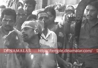 சிவகங்கை: சிவகங்கையில் மாசித் திருவிழாவை முன்னிட்டு பக்தர்கள் சுவாமிக்கு பன்றியை படையலிட்டு ரத்தம் குடித்து நேர்த்திக்கடன் செலுத்தினர். சிவகங்கை, மதுரை வீரன் சுவாமி கோயிலில் மாசி சிவராத்திரி அன்று பில்லி பூஜை நடக்கும். நேற்று நடந்த விழாவில் அக்கோயிலை சேர்ந்த பங்காளிகள் தங்கள் வீடுகளில் வளர்த்த பன்றிகளை சுவாமிக்கு படையலிட்டு நேர்த்திக்கடன் செலுத்தினர். முதலில் குட்டி பன்றியை வெட்டி ரத்தத்தை பூஜாரி அப்படியே குடித்தார். அதை தொடர்ந்து 3 பன்றிகளை வெட்டி சுவாமிக்கு படையல் இட்டு நேர்த்திக்கடன் செலுத்தினர். பின் சமைத்து விருந்து அளித்தனர்.