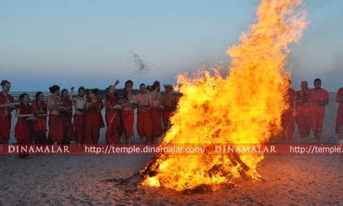 ராமேஸ்வரம்:உலக நன்மை வேண்டி, தனுஷ்கோடி அருகே முகுந்தராயர் சத்திரம் கடற்கரையில், நடந்த ‘ஸ்ரீ சக்கரம்’ பூஜையில், வெளிநாடு பக்தர்கள் யாகம் வளர்த்து தரிசனம் செய்தனர். உலகில் அமைதி, சமாதானம், ஆன்மிகம் வளர, ஆன்மிக சக்திக்குழு ஏற்பாட்டில், முகுந்தராயர் சத்திரம் கடற்கரையில், மார்ச் 5 முதல் ‘ ஸ்ரீ சக்கரம்’ பூஜை, யாக வேள்வி மாலை 5 முதல் இரவு 8 மணி வரை நடக்கிறது. இந்தியா, ஆஸ்திரேலியா, இங்கிலாந்து, ஜெர்மனி, கனடா, பிரான்ஸ், பின்லாந்து, பிரேசில் நாடுகளைச் சேர்ந்த 84 பக்தர்கள், தனுஷ்கோடி கடலில் நீராடி விட்டு, பூஜையில் பங்கேற்று வருகின்றனர். இதன் ஒருங்கிணைப்பாளரான புனேயை சேர்ந்த ஆனந்த் ஜோஸி கூறியதாவது: சிவன், பிரம்மா, விஷ்ணுவை தரிசனம் செய்ய, ‘ஸ்ரீ சக்கரம்’ பூஜை மற்றும் யாக வேள்வி நடத்துகிறோம். இதற்கு உலகில் சிறந்த இடமாக தனுஷ்கோடி கடற்கரையை தேர்வு செய்தோம். இப்பூஜையால் உலகில் அமைதி, சமாதானம் ஏற்பட கடவுள் அருள் புரிவார். இப்பூஜை மார்ச் 9 வரை நடக்கும்,என்றார்.