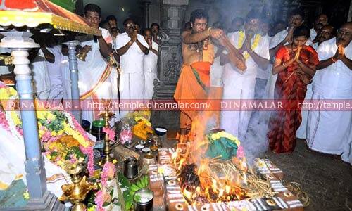 பவானி: அறநிலையத்துறை சார்பில், தமிழகத்தில், 122 கோவில்களில் நேற்று முன்தினம் சிறப்பு பொது வழிபாடு நடந்தது. இதன்படி, பவானி சங்கமேஸ்வரர் கோவிலில் காலை, 5.30 மணிக்கு, 108 திரவியங்களைக் கொண்டு, ஆயுஷ்ய ஹோமம் மற்றும் சிறப்பு பொது வழிபாடு நடந்தது.மாசி மாதம், குருவாரம், மகம் நட்சத்திரம், கும்ப லக்கினத்தில் நடந்த இந்த வழிபாட்டுக்கு, சுற்றுச்சுழல் துறை அமைச்சர் தோப்பு வெங்கடாசலம் தலைமை வகித்தார். திருப்பூர் எம்.பி., சத்தியபாமா, பவானி எம்.எல்.ஏ., நாராயணன், ஈரோடு மத்திய கூட்டுறவு வங்கி தலைவர் கிருஷ்ணராஜ், பவானி நகராட்சி தலைவர் கருப்பணன், யூனியன் தலைவர் தங்கவேலு, ஆவின் துணைத் தலைவர் சுப்பிரமணியம் ஆகியோர் முன்னிலை வகித்தனர். சங்கமேஸ்வரர் கோவில் வளாகத்தில் ஹோம வழிபாடும், சங்கமேஸ்வரருக்கு அபிஷேகமும், சிறப்பு அலங்காரமும் செய்து, தீபாராதனை நடந்தது.அ.தி.மு.க., பொதுச் செயலாளர் ஜெயலலிதா பிறந்த நட்சத்திரமான மக நட்சத்திரத்தில் நடந்த வழிபாட்டில், அவர் நீண்ட ஆயுள் பெறவும், வழக்கில் இருந்து விடுதலை பெறவும் வேண்டினர்.அச்சுக்கூட தலைவர் சித்தையன், துணை தலைவர் விஸ்வநாதன், பவானி யூனியன் துணை தலைவர் ரவி, எம்.ஜி.ஆர்., மன்ற துணை செயலாளர் முத்துசாமி, அம்மாபேட் டை டவுன் பஞ்., தலைவர் செந்தில்குமார் உட்பட பலர் பங்கேற்றனர்.