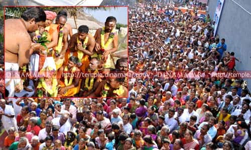 சேலம்: சேலம், நெத்திமேடு சமயபுரம் மாரியம்மன், முனியப்பன் கோவிலில் நேற்று நடந்த கும்பாபிஷேகத்தில், திரளாக பக்தர்கள்,அம்மனை தரிசனம் செய்தனர். சேலம், நெத்திமேடு முனியப்பன், சமயபுரம் மாரியம்மன் கோவிலின் மஹா கும்பாபிஷேகத்தை முன்னிட்டு, நேற்று முன்தினம் காலை ஹோம பூஜைகள் துவங்கின. தொடர்ந்து விக்னேஷ்வர பூஜை, புண்யாஹவாசம், தேவதா அனுக்ஞை, மகாகணபதி ஹோமம், துர்கா, லட்சுமி, சரஸ்வதி, சுதர்ஸன, நவக்ரஹ ஹோமங்கள் நடந்தது. தொடர்ந்து கோபூஜை, புனித தீர்த்தங்கள், முளை பாழிகை, கோபுர கலசம், புதிய சிலைகள், விக்ரஹகங்கள் மேள, தாளம் முழங்க ஊர்வலமாக எடுத்துவரப்பட்டது. இதில், திரளாக பக்தர்கள் ஸ்வாமி தரிசனம் செய்தனர்.மாலையில், வாஸ்து சாந்தி, ப்ரவேச பலி, ம்ருத்சங்க்ஹரணம், அங்குரார்பணம், கும்ப அலங்காரம், யாகசாலை பிரவேசம், த்வார பூஜை, வேதி கார்ச்சனை, முதற் கால யாக வேள்வி ஆகியன நடந்தது.நேற்று காலை, இரண்டாம் கால யாக வேள்வி, நாடி சந்தானம், தத்வார்ச்சனை ஸ்பர்ஷாஹூதி, ஷண்ணவதி ஹோமம், கனிவர்க்க ஹோமம், இரண்டாம் கால மஹாபூர்ணாஹூதி ஆகியன நடந்தது.தொடர்ந்து சமயபுரம் மாரியம்மன் விமான கோபுர கும்பாபிஷேகம், பரிவார தெய்வங்களான முனியப்பன், சமயபுரம் மாரியம்மன் ஆகிய தெய்வங்களுக்கு அஷ்டபந்தன மஹா கும்பாபிஷேகம் நடந்தது.மஹா அபிஷேகம், அலங்காரம், தசதரிசனம், தசதானம், மஹாதீபாராதனை செய்யப்பட்டு, அன்னதானம் வழங்கப்பட்டது. இதில், திரளாக பக்தர்கள் அம்மனை தரிசித்து சென்றனர்.