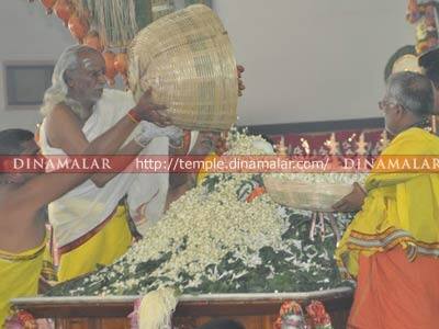 சத்ய சாய் சேவா கமிட்டி’ அறக்கட்டளை சார்பில், பெங்களூரு ஒயிட்பீல்டில் உள்ள பிருந்தாவனில், அதிருத்ர மகா யக்ஞம்’ நடைபெற்று வருகிறது. விழாவில் நேற்று காலை, வேத பாராயணம், பஜனை நடந்தது. தொடர்ந்து, 90 கிலோ மலர்களால் புஷ்பாபிஷேகம் சிறப்பாக நடைபெற்றது. புஷ்பாபிஷேகத்திற்கு பின் மங்கள ஆரத்தியுடன் காலை நேரப் பூஜை நிறைவடைந்தது. இதைத் தொடர்ந்து, பக்தர்களுக்கு பிரசாதம் வழங்கப்பட்டது. இதில், ஏராளமான பக்தர்கள் பங்கேற்றனர்.