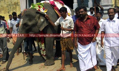 இதனை முன்னிட்டு தினந்தோறும் தமிழகம் மட்டும் இல்லாமல் பிற மாநிலங்கள் மற்றும் வெளி நாடுகளில் இருந்தும் ஏராளமான பக்தர்கள் வந்து கோ பூஜை, கஜ பூஜை, ஹோமங்கள் செய்வது வழக்கம். கோயிலில் இருந்த யானை அபிராமி உடல் நலக்குறைவால் கடந்த 2013ம் ஆண்டு ஜனவரி மா தம் 25 ம் தேதி உயிரிழந்தது. தொடர்ந்து கோயிலில் ஹோமல் செய்ய வரும் பக்தர்கள் யானை இல்லாததால் கஜ பூஜை செய்ய முடியாத நிலை ஏற்பட்டது. இந்நிலையில் பக்தர்கள் காணிக்கையாக அளித்த 11 வயதுடைய பத்மாவதி என்ற புதிய யானை அஸ்சாம் மாநிலத்தில் இருந்து திருக்கடையூர் கோயிலுக்கு அழைத்து வரப்பட்டது. அங்கு சிவாச்சாரியார்கள் கணபதி ஹோமம், அஷ்ட கஜ பூஜைகள் செய்தனர். தொடர்ந்து விநாயகர், அமிர்தகடேஸ்வரர், காலசம்ஹார மூர்த்தி, அபிராமி சன்னதிகளில் சிறப்பு பூஜைகள் செய்யப்பட்டு தீபாராதனை நடைபெற, யானைக்கு அபிராமி என புதியபெயர் சூட்டப்பட்டது. இதனையடுத்து யானை அபிராமி கோயிலை வலம் வந்து சுவாமி, அம்பாளை நமஸ்காரம் செய்தது. இதில் கோயில் நிர்வாகிகள், முக்கிய பிரமுகர்கள் உள்ளிட்ட திரளான பக்தர்கள் கலந்து கொண்டனர்.