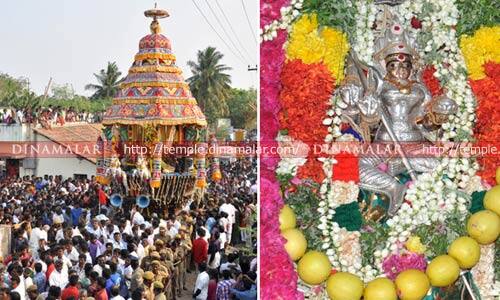 புதுக்கோட்டை: புதுக்கோட்டை அருகே, திருவப்பூர் முத்துமாரியம்மன் கோவில், மாசித் திருவிழாவையொட்டி, தேரோட்டம் நடைபெற்றது. புதுக்கோட்டை அருகே உள்ள திருவப்பூர் முத்துமாரியம்மன் கோவிலில், பிப்ரவரி, 22ம் தேதி பூச்சொரிதல் விழா நடந்தது. மார்ச், 1ம் தேதி, கொடியேற்றத்துடன் மாசிப்பெருந்திருவிழா தொடங்கியது.விழா துவக்க நாளில், திருவப்பூர் குலாலர் தெரு திடலிலிருந்து புரவி எடுத்துச் சென்று சிறப்பு அபிஷேகம், வழிபாடு செய்தனர். தொடர்ந்து, திருக்கோகர்ணேசர் உடனுறை பிரஹதாம்பாள் கோவிலில் உற்சவ மாரியம்மனுக்கு அபிஷேக ஆராதனைகள் நடைபெற்றது. அங்கிருந்து ஊர்வலமாக சென்று, திருவப்பூர் கோவிலை அடைந்த அம்மனுக்கு, காப்பு கட்டும் வைபவம் நடைபெற்றது. இதையடுத்து, ஒவ்வொரு நாளும் அன்னவாகனம், ரிஷப வாகனம், சிம்ம வாகனம், குதிரை வாகனம், முத்துபல்லக்கு போன்றவற்றில் அம்மன் திருவீதி உலா நடைபெற்றது. நேற்று, மாசித்திருவிழா தேரோட்டம் விமரிசையாக நடைபெற்றது. விழாவையொட்டி, உள்ளூர் விடுமுறை அறிவிக்கபட்டிருந்தது. நகரின் பல்வேறு பகுதிகளில் இருந்து, ஆயிரக்கணக்கான பக்தர்கள் பால்குடம், காவடிகள் எடுத்தும், அலகு குத்தியும், அக்கின குண்டம் இறங்கியும் நேர்த்திக்கடனை நிறைவேற்றினர். கவிநாடு கிராமத்தை சேர்ந்த குழந்தைகள் கோலாட்டம் நடனம் ஆடினார். பல்÷று இடங்களில் அன்னதானம் வழங்கப்பட்டது. இதில், எம்.எல்.ஏ., கார்த்திக்தொண்டைமான், நகராட்சித் தலைவர் ராசேகரன், முன்னாள் அறங்காவல் குழு தலைவர்கள் வெங்கடாசலம், வைரவன், திருவப்பூர் முத்துமாரியம்மன் அறக்கட்டளை நிர்வாகி சேகரன், நகராட்சி உறுப்பினர்கள் மலர்விழி முத்து, சதீஷ்குமார், இந்து சமய வழிபாட்டு மன்ற நிர்வாகிகள் உள்ளிட்டோர் பங்கேற்றனர். ஏற்பாடுகளை, ஹிந்து சமய அறநிலையத்துறை உதவி ஆணையர் ஜெயப்பிரியா, செயல் அலுவலர் கருணாகரன், ஆய்வர் ராமகிருஷ்ணன், மேற்பார்வையாளர் சேதுராமன், விழாக்குழுவினர், திருவப்பூர், கவிநாடு கிராமத்தினர் மற்றும் மண்டகப்படிதாரர்கள் செய்தனர்.