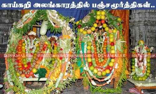 விருத்தாசலம்: விருத்தகிரீஸ்வரர் கோவில் மாசி மக பிரம்மோற்சவ விடையாற்றி உற்சவத்தில் பழங்கள், காய்கறிகளால் அலங்கரித்து, பஞ்சமூர்த்திகள் அருள்பாலித்தனர். கடலூர் மாவட்டம், விருத்தாசலம் விருத்தாம்பிகை, பாலாம்பிகை உடனுறை விருத்தகிரீஸ்வரர் கோவில் மாசி மக பிரம்மோற்சவம் கடந்த மாதம் 23ம் தேதி துவங்கி, கடந்த 3ம் தேதி தேரோட்டம், 4ம் தேதி மாசி மகம், தீர்த்தவாரி, 5ம் தேதி தெப்பல் உற்சவத்துடன் நிறைவடைந்தது. அதைத் தொடர்ந்து, 10 நாள் விடையாற்றி உற்சவம் நடக்கிறது. 6ம் நாள் உற்சவத்தையொட்டி, விநாயகர், முருகர், விருத்தகிரீஸ்வரர், தாயார், சண்டிகேஸ்வரர் ஆகிய பஞ்சமூர்த்திகளுக்கு நுõற்றுக்கால் மண்டபத்தில் சிறப்பு அபிஷேக ஆராதனை நடந்தது. ஆப்பிள், ஆரஞ்சு, திராட்சை, சாத்துக்குடி, வாழை உள்ளிட்ட பழங்கள், கத்தரி, முள்ளங்கி, புடலை, கேரட், பச்சை மிளகாய், அவரை, வெண்டை, சுரைக்காய் உள்ளிட்ட காய்கறி வகைகளால் பஞ்சமூர்த்திகள் அலங்கரிக்கப்பட்டு, மகா தீபாராதனை நடந்தது. ஏராளமானோர் தரிசனம் செய்தனர்.
