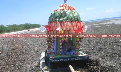 திருவாடானை: பூக்களால் அலங்கரிக்கப்பட்ட மண்பானை தேர் ஒன்று, தொண்டி அருகே கடற்கரையில் நேற்று ஒதுங்கியது. ராமநாதபுரம் மாவட் டம், தொண்டி அருகே காரங்காடு கடற்கரையில், பூக்களால் அலங்கரிக்கப்பட்ட மண்பானை மீது, கோபுர கலசம் போன்ற அமைப்பில் சிறிய தேர் வடிவம், கரை ஒதுங்கியது. அதைப் பார்த்த மீனவர்கள் போலீசாருக்கு தெரிவித்தனர். காரங்காடு பகுதிவாசிகள் கடற்கரையில் திரண்டனர். தொண்டி போலீசார், அதை ஆய்வு செய்தனர். அதில், நாகம்மாள் ரதம், பும்புடு தீவு என, எழுதப்பட்டு இருந்தது. அதில் குறிப்பிட்டிருந்த மொபைல் எண்ணை தொடர்பு கொண்டனர். இலங்கை, பும்புடு தீவில் நாகம்மாள் கோவிலுக்கு, நேர்த்திக்கடனாக வழங்கப்பட்ட மண் பானை ரதம், கடலில் விடப்பட்டிருந்தாக, எதிர்முனையில் பேசியவர் தெரிவித்தார். இந்த தகவலை அடுத்து, கிராமவாசிகள் கலைந்து சென்றனர்.