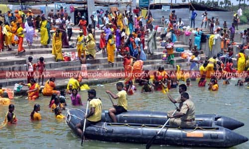 பழநி: பங்குனி உத்திரவிழாவை முன்னிட்டு பழநி இடும்பன்குளத்தில் நீராடும் பக்தர்கள் பாதுகாப்பிற்காக தீயணைப்பு துறையினர் ரப்பர் டியூப் படகில் ரோந்து வருகின்றனர். பங்குனி உத்திரவிழாவை முன்னிட்டு ஈரோடு, காங்கேயம், திண்டுக்கல், திருப்பூர், கோவை உள்ளிட்ட பகுதிகளிலிருந்து ஏராளமான பக்தர்கள் தீர்த்தக் காவடி, மயில்காவடி, பால்குடங்கள் எடுத்து பாதயாத்திரையாக வந்தவண்ணம் உள்ளனர். அவ்வாறு வரும் பக்தர்கள் சண்முகநதி, இடும்பன் குளத்தில் நீராடுகின்றனர். விபத்து தடுப்பு நடவடிக்கையாக தீயணைப்பு துறையினர் 24 மணிநேரமும் இடும்பன்குளத்தில் நிலைய அலுவலர் தலைமையில் 16பேர் கொண்ட குழுவாக ரப்பர் டியூப் படகில் ரோந்துவருகின்றனர். ஆழமான பகுதிகளில் பக்தர்கள் குளிக்ககூடாது என எச்சரிக்கை செய்கின்றனர். மேலும் சண்முகநதி, பாதவிநாயகர் கோயில், வின்ச் ஸ்டேஷன், பஸ் ஸ்டாண்ட் உட்பட 6 இடங்களில் தீயணைப்பு வாகனங்கள் நிறுத்தப்பட்டுள்ளது. திண்டுக்கல் மாவட்ட அலுவலர் கிருஷ்ணமூர்த்தி, பழநி தீயணைப்பு நிலைய அலுவலர் மயில்ராஜ் உள்ளிட்டோர் மேற்பார்வையில் 100 வீரர்கள் கண்காணிப்பு, மீட்புபணியில் ஈடுபட்டுள்ளனர்.