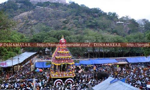 பழநி: பங்குனி உத்திர விழாவை முன்னிட்டு வெற்றிவேல் முருகனுக்கு அரோகரா சரண கோஷத்துடன் பழநி கிரிவீதியில் தேரோட்டம் நடந்தது. திருஆவினன்குடிகோயிலில் மார்ச் 28ல் கொடியேற்றத்துடன் துவங்கி ஏப்.,6 வரை நடக்கிறது. விழாவின் ஏழாம் நாளான நேற்று பங்குனி உத்திர தேரோட்டத்தை முன்னிட்டு அதிகாலையில் சுவாமி தீர்த்தவாரிக்கு எழுந்தருளி தீர்த்தம் வழங்குதல் நடந்தது. முத்துகுமாரசுவாமி, வள்ளி தெய்வானையுடன் தந்தப்பல்லக்கில் உலா வந்து, காலை 10.30 மணிக்கு வடக்கு கிரிவீதியில் சுவாமி தேரேற்றம் நடந்தது. சிறப்பு அலங்காரம் பூஜைகள் செய்யப்பட்டு மாலை 4.50 மணிக்கு தேரோட்டம் துவங்கியது. நான்கு கிரிவீதிகள் வழியாக தேர்வலம் வரும்போது பக்தர்கள் நவதானியங்களையும், பழங்கள், நாணயங்களை தேரின் மீது வீசி வெற்றிவேல் முருகனுக்கு அரோகரா என சரணகோஷங்கள் எழுப்பினர். மாலை 6.35 மணிக்கு தேர் நிலையை வந்தடைந்தது. இன்று இரவு 9 மணிக்குமேல் வையாபுரி குளத்துகரையில் வாணவேடிக்கை நடக்கிறது. 10 மணிக்கு தங்ககுதிரை வாகனத்தில் முத்துகுமாரசுவாமி உலா வந்து அருள்பாலிக்கிறார்.