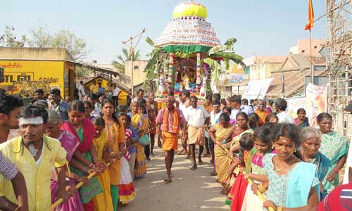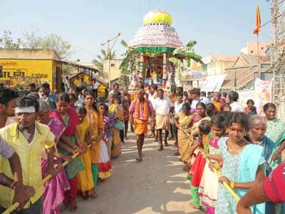 தேர் பவனியின் போது பக்தர்கள் காவடி எடுத்தும், அலகு குத்தியும்ஊர்வலம் வந்தனர். மாலை 4 மணிக்கு தீ மிதி விழா நடந்தது. இரவு 7 மணிக்கு வள்ளி, தெய்வானை, முருகப்பெருமான் திருக்கல்யாணஉற்சவம் நடந்தது. விழா குழுவினர் தேவராஜன், குமரவேல் கலந்து கொண்டனர்.அருவாள் குத்திய பக்தர் முருகப்பெருமானின் பக்தர்கள் அலகு குத்துவது, கடப்பாறை உருவுதல், மிளகாய் சாந்து அபிஷேகம், ஆணி பாதுகை அணித்து செல்வது என தீவிரமாக பக்தியை வெளிப்படுத்துவது வழக்கம்.