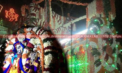 திருத்தணி: திரவுபதி அம்மன் கோவிலில் நடந்து வரும் தீமிதி திருவிழாவில் நேற்று, உற்சவர் அம்மன் புஷ்ப பல்லக்கில் வீதியுலா வந்து, பக்தர்களுக்கு அருள்பாலித்தார். திருத்தணி, காந்தி நகரில் உள்ள திரவுபதியம்மன் கோவிலில், இந்தாண்டிற்கான தீமிதி திருவிழா, கடந்த மாதம், 26ம் தேதி, கொடியேற்றத்துடன் துவங்கியது. தினமும், மூலவருக்கு சிறப்பு அபிஷேகம்; மதியம், மகாபாரத சொற்பொழிவு; இரவு, மகாபாரத நாடகம் நடந்து வருகிறது. திருத்தணி நகர பூ வியாபாரிகள் சங்கம் சார்பில், நேற்று முன்தினம் இரவு, புஷ்ப பல்லக்கு சேவை நிகழ்ச்சி நடந்தது. இதில், மலர்களால் அலங்கரிக்கப்பட்ட புஷ்ப பல்லக்கில், உற்சவர் திரவுபதியம்மன் சிறப்பு அலங்காரத்தில் எழுந்தருளினார். தொடர்ந்து, சிறப்பு தீபாராதனை நடந்தது. பின், புஷ்ப பல்லக்கில் உற்சவர் அம்மன், முக்கிய வீதிகளில் வீதியுலா வந்து பக்தர்களுக்கு அருள்பாலித்தார்.