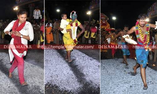 விழாவின் முக்கிய நிகழ்ச்சியான குண்டம் இறங்குதல், அதிகாலை நடந்தது. நேற்று அம்மன் அழைத்தல் நிகழ்ச்சி நடந்தது. இதில் பண்ணாரி மாரியம்மனுக்கு சிறப்பு பூஜை செய்து, குண்டத்தில் பரப்பி வைக்கப்பட்ட வேம்பு மற்றும் ஊஞ்சல் மரத்துக்கு தீ வைத்து, அக்னி குண்டம் வளர்க்கப்பட்டது. பண்ணாரி மாரியம்மன் (மூலவர்), கையில் வீணையுடன் அருள் பாலித்தார். அதிகாலை சரியாக, 3.45 மணிக்கு கோவிலின் தலைமை பூசாரி ராஜசேகர் தீ மிதித்தார். முன்னதாக, குண்டத்துக்கு சிறப்பு பூஜை செய்தார். ராஜசேகரை தொடர்ந்து, பூசாரிகள் ராஜேந்திரன், ஆறுமுகம் ஆகியோர் தீ மிதித்தனர். பின், சப்பரத்தை சுமர்ந்தபடி நால்வரும் தீ இறங்கினர். இவர்களை தொடர்ந்து கடந்த, 1ம் தேதி முதல் வரிசையில் காத்திருக்கும் பக்தர்கள் தீ மிதித்து, தங்கள் நேர்த்தி கடனை நிறைவேற்றினர்.