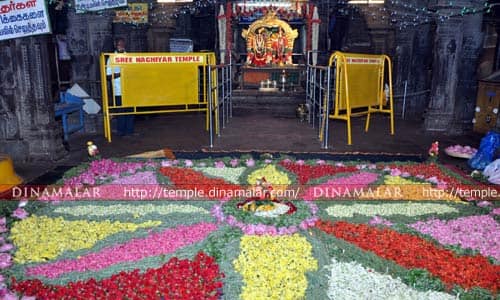 ஸ்ரீவில்லிபுத்தூர்: ஸ்ரீவில்லிபுத்தூர் ஆண்டாள் கோயிலில் நேற்று புஷ்பயாகம் நடந்தது. ஆண்டாள் திருக்கல்யாண திருவிழாவின் கடைசி நாளான ÷ நற்று மாலை 6 மணிக்கு மேல் புஷ்பயாகம் நடந்தது.முன்னதாக காலையில் உற்சவர்களுக்கு திருமஞ்சனம் நடந்தது.வெள்ளிக்கிழமை குறடு மண்டபத்தில் பல வண்ண மலர்களால் பூக்கோலம் போடப்பட்டு புஷ்பயாகம் நடந்தது.ஆண்டாள்,ரெங்கமன்னார் சிறப்பு அலங்காரத்தில் எழுந்தரு ளினர்.திரளான பக்தர்கள் தரிசித்தனர்.தக்கார் ரவிச்சந்திரன்,செயல் அலுவலர் ராமராஜா ஏற்பாடுகளை செய்திருந்தனர்.