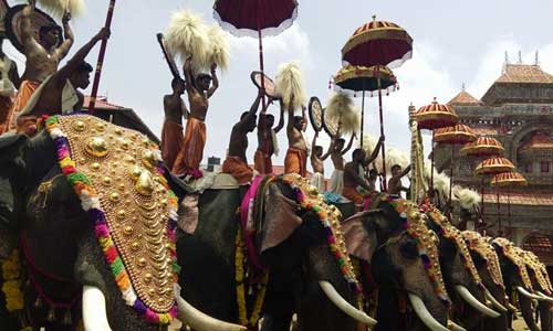 நடப்பாண்டு திருவிழா, நேற்று அதிகாலை நடைதிறப்புடன் துவங்கியது. காலை, 7:30 மணிக்கு பந்தீரடி பூஜை, கொட்டிப்பாடி சேவை, 9:00 மணிக்கு யானைகளின் அணிவகுப்புடன் செண்டை மேளம் முழங்க காழ்ச்ச சீவேலி நடைபெற்றது. தொடர்ந்து யானை மேல் அமர்ந்து அம்மன் பவனி வந்து பக்தர்களுக்கு அருள்பாலித்தார். மாலை, 5.30 மணிக்கு திருவிழாவின் சிறப்பு அம்சமான, 15 யானைகள் அணிவகுப்புடன் குடைமாற்றம் நிகழ்ச்சி நடைபெற்றது. இதை ஆயிரக்கணக்கான பக்தர்கள் கண்டு களித்தனர்.