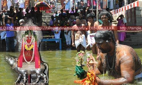 பிள்ளையார்பட்டியில் தீர்த்தவாரி: தங்க கவச அலங்காரத்தில் மூலவர்!