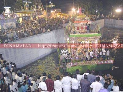 திருவிழா நாட்களில் சுவாமியும், அம்பாளும் பல்வேறு வாகனங்களில் எழுந்தருளி , வீதியுலா வந்து பக்தர்களுக்கு காட்சியளித்தனர். பல்வேறு சமுதாயங்களை சேர்ந்தவர்கள் சார்பில் மண்டகப்படி நிகழ்ச்சிகள் நடந்தது. 11ம் நாளான நேற்று காலை 10.30 மணிக்கு சுவாமி, அம்பாளுக்கு சிறப்பு அபிஷேகம், பூஜைகள் நடந்தது. மாலை 6 மணிக்கு சுவாமியும், அம்பாளும் சிறப்பு அலங்காரங்களுடன், ரிஷப வாகனத்தில் எழுந்தருளி வீதியுலா வந்து பக்தர்களுக்கு காட்சியளித்தனர். பின் பிரதான சாலையில் உள்ள அடைக்கலம் காத்தான் மண்டபத்தில் சுவாமியும் அம்பாளும் எழுந்தருளினர். அங்கு சிறப்பு பூஜைகள் நடந்தது. பின் அலங்கரிக்கப்பட்ட தேரில் இரவு 8 மணிக்கு சுவாமி, அம்பாளும் எழுந்தருளி, 9 முறை தெப்பத்தை வலம் வந்தனர். இதனை பக்தர்கள் கண்டு களித்தனர். விழா ஏற்பாடுகளை இணை கமிஷனர் அன்புமணி, நிர்வாக அதிகாரி பூவலிங்கம், தக்கார் அருணாச்சலம் ஆகியோர் செய்திருந்தனர்.