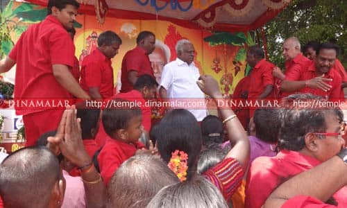 திண்டிவனம்: மேல்மருவத்தூர் பங்காரு அடிகளாருக்கு திண்டிவனத்தில் வரவேற்பு அளிக்கப்பட்டது. விக்கிரவாண்டி அடுத்த வழுதாவூரில் நடந்த கோவில் நிகழ்ச்சிக்கு செல்லும் வழியில், நேற்று காலை திண்டிவனம் மேம்பாலம் அருகே மேல்மருவத்தூர் பங்காரு அடிகளாருக்கு வரவேற்பு அளிக்கப் பட்டது. ஸ்ரீஆதிபராசக்தி வழிபாட்டு மன்ற தலைவர் ரத்னவேலு, துணைத் தலைவர் சுகுமார், செயலாளர் ரவி ஆகியோர் தலைமையில் வரவேற்பு அளித்தனர். நிகழ்ச்சியில் பஸ் உரிமையாளர் ராதாகிருஷ்ணன், தர்மலிங்கம், கதிர்வேலு, காசி, சேகர், பிர்லா செல்வம் உட்பட பலர் கலந் துக் கொண்டனர். முன்னதாக பங்காரு அடிகளாருக்கு பூரண கும்ப மரியாதையுடன் வரவேற்பு அளிக்கப்பட்டது.