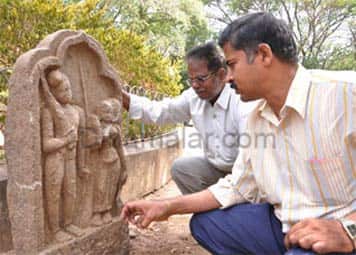 அருங்காட்சிய காப்பாட்சியாளர் சரவணன் கூறியது: இந்த கற்சிலை வீரக்கல் சிலையாகும். நாயக்கர் மன்னர் ஆட்சி காலத்தில் வீரமாக போரிட்டு உயிர் நீத்த படைத் தலைவனுக்காக செதுக்கப்பட்டிருக்கலாம். படைத்தலைவன் தன் மனைவியுடன் நின்ற நிலையில் சிலையில் காணப்படுகின்றது. படைத்தலைவன் வலது கையில் கத்தியுடனும், இடது கையில் வில்லுடனும் காணப்படுகின்றார். நாயக்க மன்னர்களுக்கான அழகான கொண்டையுடன் உள்ளார். அனரது மனைவி வலது கையில் மலரையும், இடது கையை தொங்கவிட்டபடியும், அழகிய ஆடை ஆபரணங்களுடன் சிலை உள்ளது. புடைப்பு சிற்பமாக காணப்படும் இந்த சிலை, 500 ஆண்டுகள் பழமையானது. நாயக்க மன்னர்கள் ஆட்சி காலத்தை சேர்ந்தது. கி.பி., 16ம் நூற்றாண்டை சேர்ந்த சிற்பமாக இருக்கலாம் என கருதப்படுகின்றது. இந்த சிலை தற்போது வேலூர் அரசு அருங்காட்சியகத்தில் பொது மக்கள் பார்வைக்குவைக்கப்பட்டுள்ளது. இவ்வாறு அவர் கூறினார்.