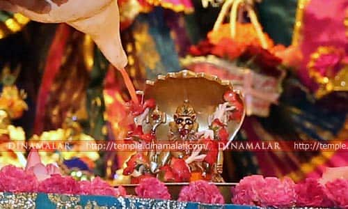 மதுரை: நரசிம்ம அவதாரத் திருநாளான மே 3ம் தேதி மதுரை மணிநகரத்தில் உள்ள இஸ்கான் கோயிலில் லெக்ஷ்மி நரசிம்மருக்கு மஹா அபிஷேகம் உள்ளிட்ட சிறப்பு பூஜைகள் நடந்தது. இதனையொட்டி ஒன்பது கலசங்களில் இருந்து விசேஷ தீர்த்தங்கள் நிரப்பப்பட்டு பூஜிக்கப்பட்டன. மாலை 6 மணியளவில் பால், பழம் உள்ளிட்ட பஞ்சகவ்யம், பஞ்சாமிர்த்ம், பன்னீர், இளநீர் மற்றும் பழரசங்கள் போன்ற பல வகையான அபிஷேகங்கள் வலம்புரி சங்கால் நடைபெற்றது. தொடர்ந்து பலவண்ணப்பூக்களால் புஷ்பாபிஷேகம் நடந்தது.